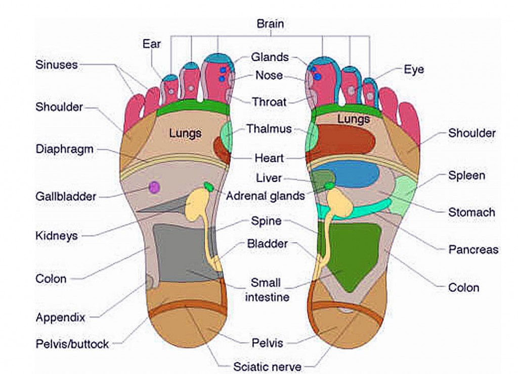 Since each organ and part of the body is represented on hands and feet, Massaging or pressing each area can stimulate the flow of energy, blood, nutrients and nerve impulses to the corresponding body zone, relieving that particular zone of ailments.